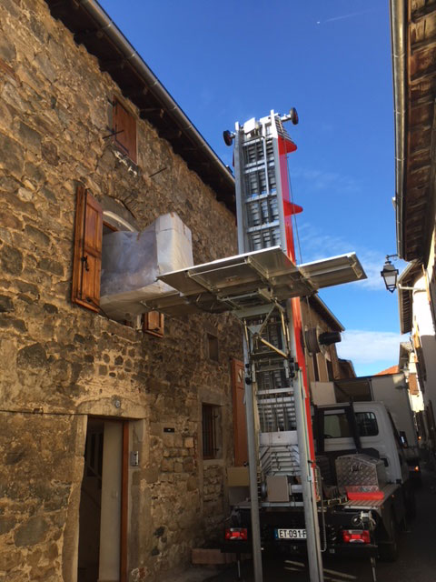 Monte-matériaux à Lyon : transport efficace de matériaux jusqu'à 37m de hauteur.